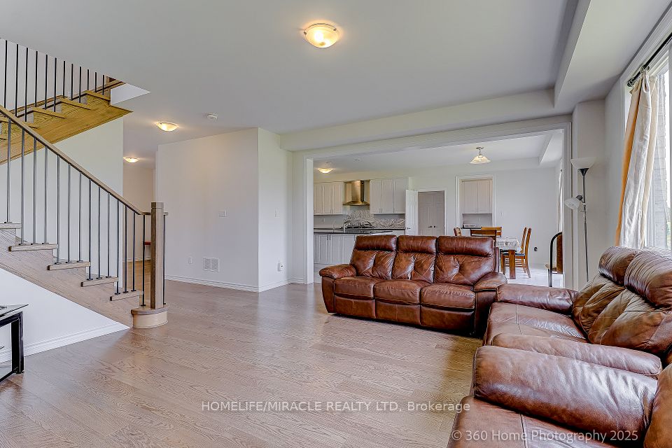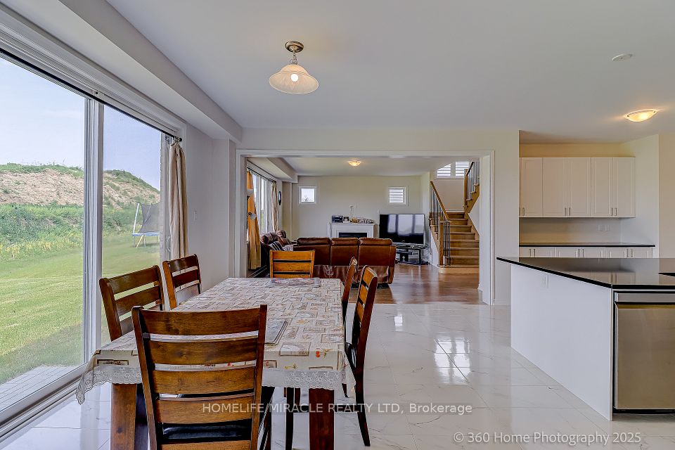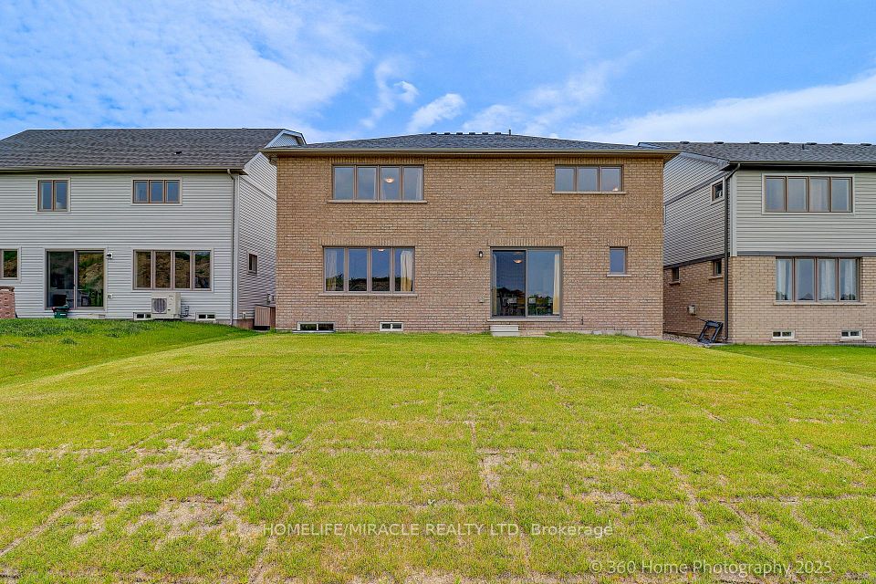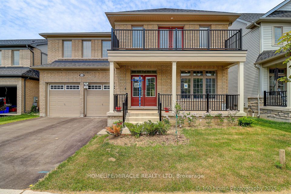 Presenting a captivating 2-storey, Never lived in dechated home in the highly sought-after Fergus neighborhood, renowned for its appeal to families. Within walking distance to parks, the scenic Cataract trail, the majestic Grand River & the vibrant historic downtown, this residence offers over 3700 square feet of luxurious living space. Crafted by award-winning builder every detail exudes quality and elegance. Step inside to discover towering 9' ceilings, pristine kitchen counter top, high end light fixtures throughout & an open-concept layout suffused with natural light. The gourmet kitchen is a chef's delight, private office along with a convenient laundry on the main floor, top-of-the-line built-in stainless-steel appliances. The adjacent dining area seamlessly flows into the inviting living room, enhanced by an elegant fireplace. carpet free hardwood floor covers stairs and hallway. Conveniently, a walkout porch and balcony offering an ideal retreat and back yard lots of space for outdoor gatherings. Ascending to the upper level, five spacious bedrooms await a catering to the needs of modern families. The primary suite stands out with its generous closet space & lavish ensuite bath, featuring a double vanity with a makeup area, quartz countertops & luxurious, oversized glass shower. No detail has been overlooked in this exquisite home. Experience the epitome of luxury living in Fergus schedule your private viewing today & make this dream home yours. EV Charger Installed. Enercare smart home monitoring system with doorbell camera free for 3 years. 200 AMP electrical panel. 9" smooth ceiling on main floor.