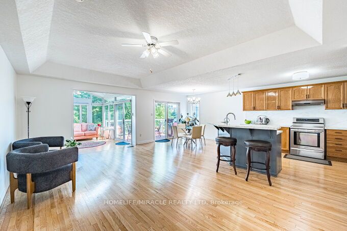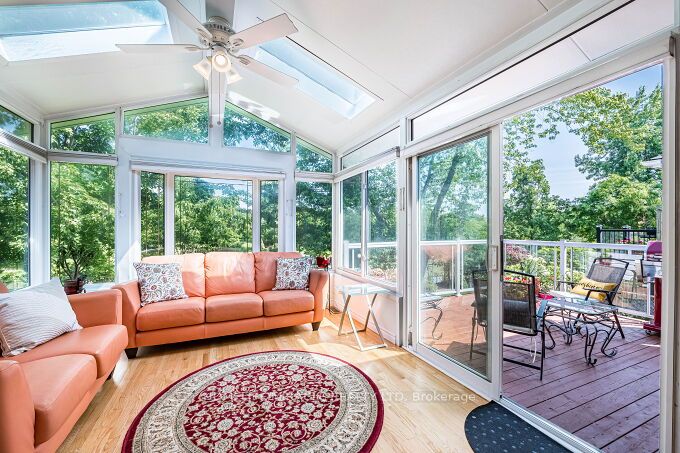 Luxury Walkout Bungalow with Million-Dollar View in Prestigious Rosewood Community, Clair Hills. Experience refined living in this elegant all-brick bungalow, offering a seamless blend of space, style, and natural surroundings in one of Waterloo's most sought-after neighbourhoods. This exceptional all-brick 2+2 bedroom, 3 full bath walkout bungalow offers impeccably finished living space with stunning, unobstructed views of the ravine and pond. Set in one of Waterloo's most desirable neighbourhoods, this home is a rare blend of elegance, comfort, and natural beauty-an ideal retreat right in the city. Designed for comfort and style, the main level welcomes you with rich hardwood flooring, elegant coffered ceilings, and an abundance of natural light. It features two bedrooms, a bright kitchen seamlessly flowing into the living and dining areas, and convenient main floor laundry. A standout feature is the sun-drenched tropical-style sunroom, complete with vaulted ceilings, skylights, and an electric fireplace-perfect for any season. Step through the sliding glass doors onto the upper deck to enjoy breakfast with the sounds of nature or unwind under the stars. The walkout basement extends the living space with two generously sized bedrooms and an open-concept Great room featuring a gas fireplace, alongside dedicated areas for reading and fitness. Sliding doors open to a covered lower deck offering tranquil views of the pond and surrounding mature trees-an ideal space to relax or entertain. Close to the University of Waterloo, top-rated schools, shopping centers, walking trails, medical facilities, places of worship, and movie theaters, this home perfectly balances comfort, privacy, and convenience. Featuring double decks and a stunning natural setting, this rare gem won't last long.