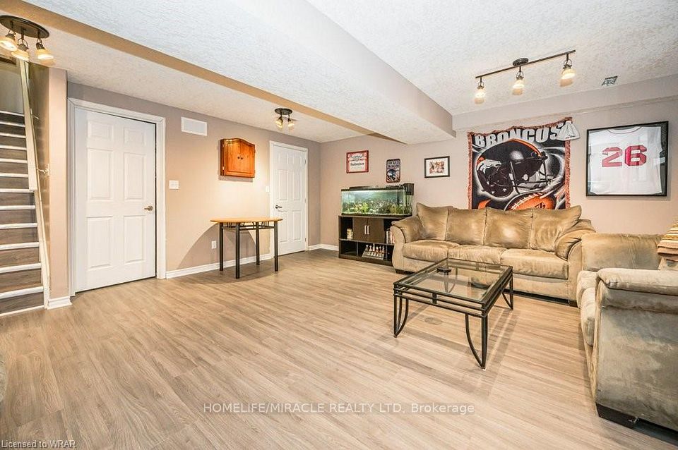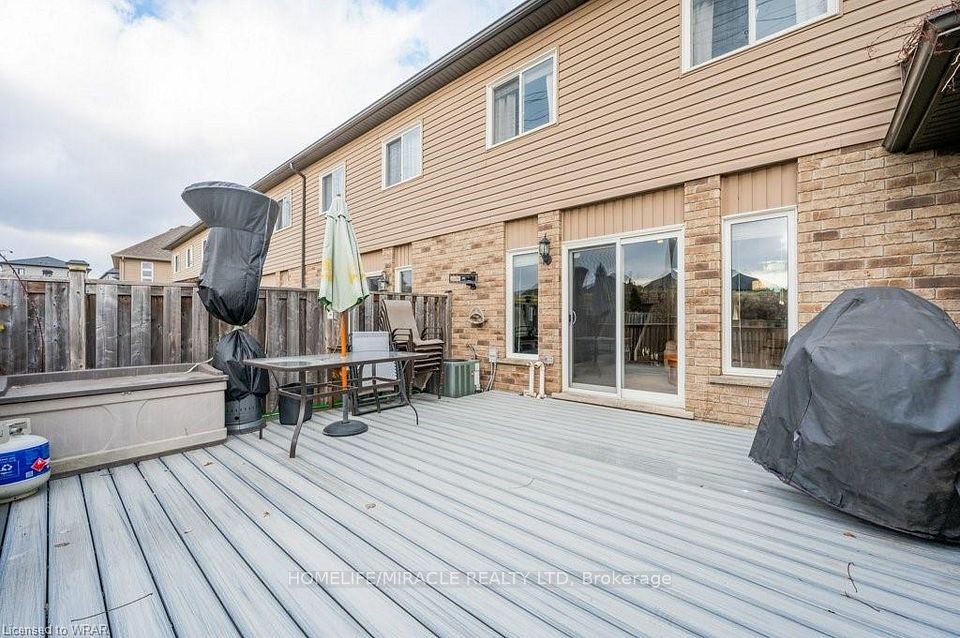 Amazing 2 Storey Townhouse with a Fully Finished Basement in one of the highly regarded community of Huron Park. The main floor comes with an open concept design with ample kitchen space for both meal prep and dining. The Great Room is drenched in sunlight provided by the sliding door with two sidelight windows. This leads to your fully enclosed, hardscaped yard complete with 20 X 16 foot composite deck and lower level firepit for evenings of summer fun. A large primary bedroom with its own 4 pc en-suite and walk-in closet & Two additional bedrooms with a common 4 pc Bath complete the upper level.The basement level boasts a large recreation room, storage area and a combination Laundry / utility room. Brand new AC & Furnace.***Photos are from before the Tenant moved in***